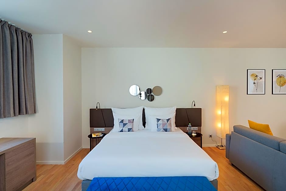 This spacious suite consists of 1 living room, 1 separate bedroom and 1 bathroom with a shower and free toiletries. The suite provides air conditioning, soundproof walls, a mini-bar, a tea and coffee maker, as well as a flat-screen TV with satellite channels. The unit offers 2 beds.